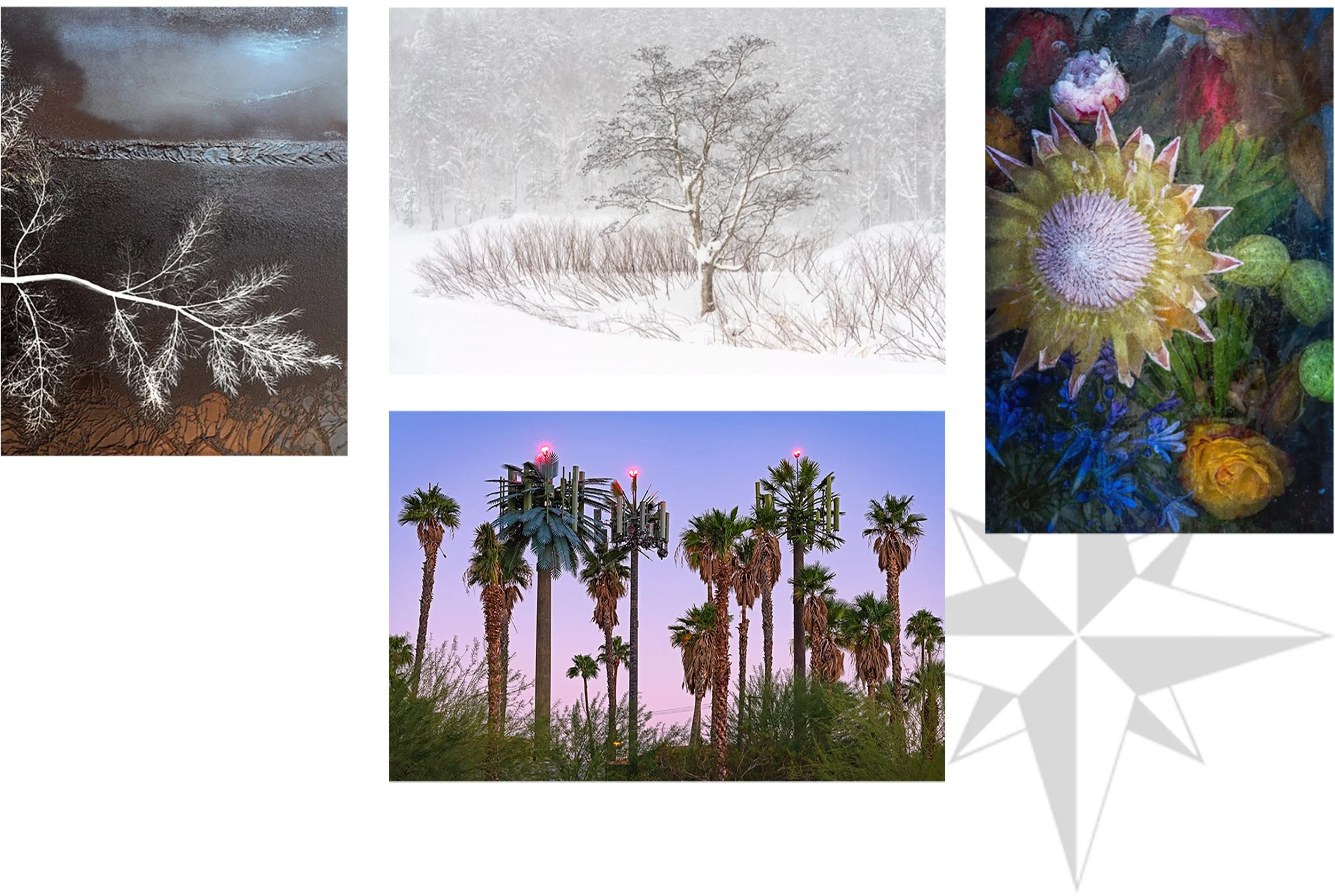 In this exhibition, we encourage the viewer to disconnect from the outside world and just bathe in the simplicity of nature’s smallest wonders, the serenity of the land, and the humor of man’s intrusions. Immerse yourself in a simple walk around the compass rose. Clear your mind, let go, and feel.